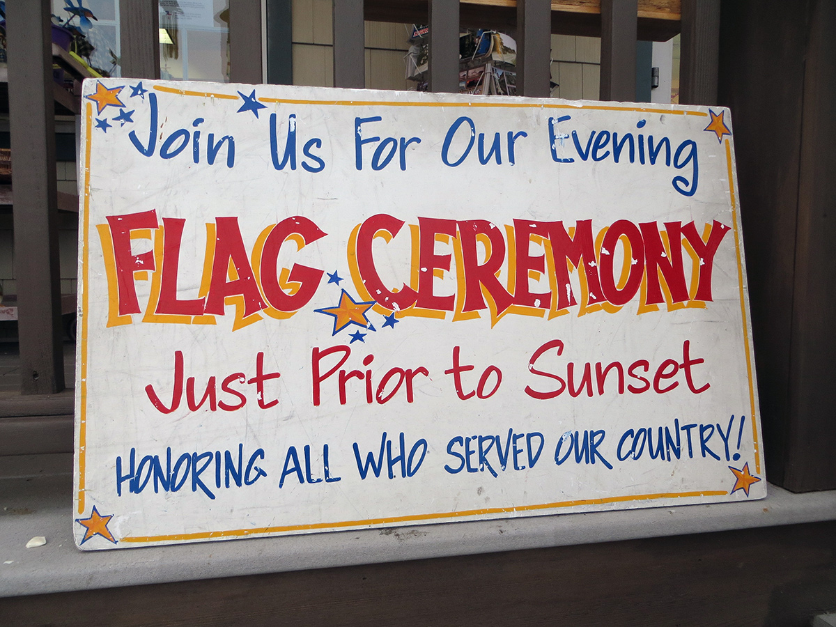 This ceremony is repeated each day from May through October, honoring the casket flags of US veterans from sunrise to sunset. At sunset the flag is lowered by the family of the veteran while Taps plays. The flag is folded with honor, and the ceremony ends with the National Anthem. Each night, this brief Flag Ceremony is enjoyed by many vacationers on the beach and boaters in the bay.